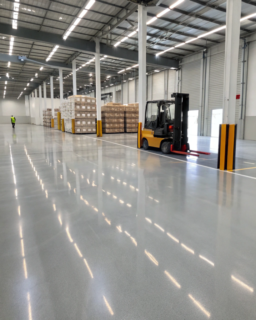 Commercial warehouse with professional epoxy flooring installation by Wollongong flooring contractors