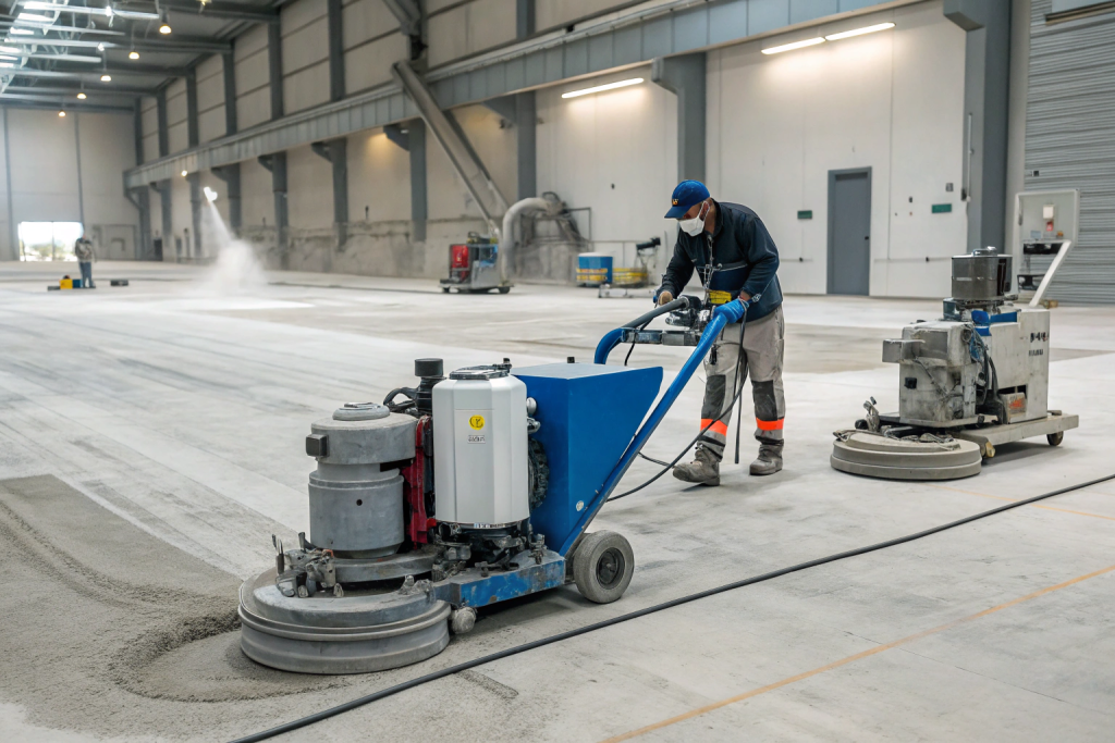 Mechanical diamond grinding is the industry benchmark for surface preparation, opening the concrete’s pore structure to achieve the mechanical bond that determines how long your floor lasts. Shot blasting is also effective for large commercial areas. Acid etching — a common shortcut among lower-cost operators — is insufficient for Barrack Point’s coastal conditions because it leaves a chemically altered surface that remains vulnerable to moisture penetration. Always confirm your installer uses diamond grinding as their standard preparation method.